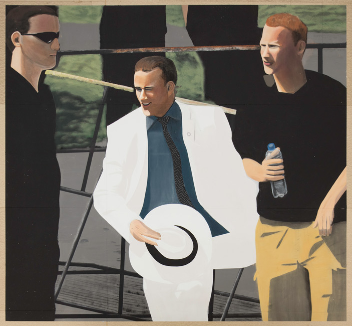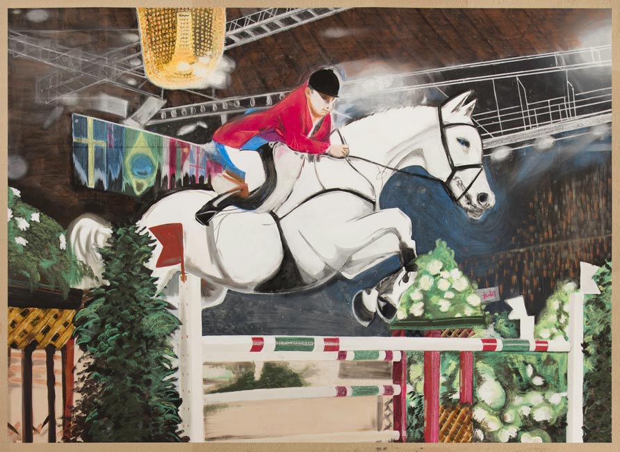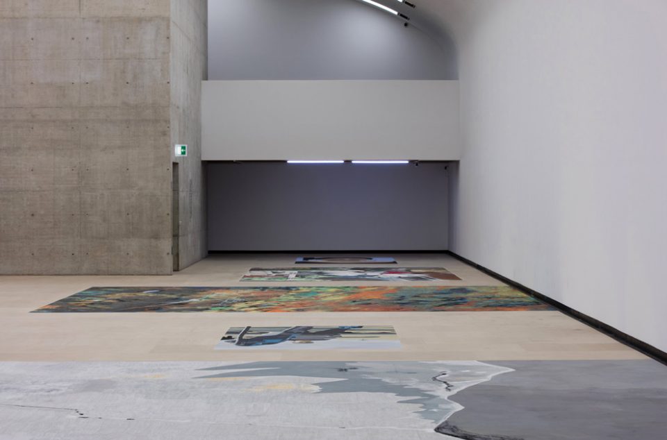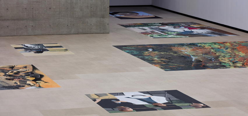 Für eine temporäre, ortsspezifische Installation hat Nicolai Auftragsmaler verpflichtet, Bilder nach Vorlagen aus Zeitungsausschnitten auf dem Boden der Ausstellungshalle nachzuzeichnen. Auf diese Weise bildet sich eine begehbare Abfolge von Motiven; ein Tableau, das aus evokativen Bildern mit sowohl politischen als auch poetischen Konnotationen besteht. Durch die konzeptuelle Geste der Übertragung von Fotografien aus öffentlichen Medien in vergrößerte Kreidemalereien auf dem Boden werden diese Bilder in einen anderen Kontext eingebettet, was sich auf ihre Wahrnehmung und somit auch auf die Rezeption auswirkt.