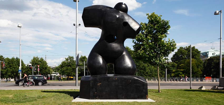 Mit „Henry Moore Bound to Fail“ präsentiert KÖR eine Arbeit des amerikanischen Künstlers Paul McCarthy am public space karlsplatz, die nicht nur formal, sondern auch räumlich mit Henry Moore kommuniziert: Sie ist in Sichtverbindung zu der Skulptur „Hill Arches“ des britischen Bildhauers, die sich vor der Karlskirche befindet, positioniert.