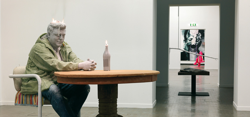 Urs Fischer setzt mit seiner multimedialen Kunst, die trotz seiner Fotografenausbildung zutiefst in der Skulptur verankert ist, große Gesten in Popattitüde. In einem bildhauerischen Balanceakt spielt der 1973 in der Schweiz geborene Künstler-Jongleur, der in New York lebt und arbeitet, mit den Dimensionen. Egal ob groß oder klein, leicht oder schwer, Licht oder Schatten, Urs Fischer erzielt subtile sowie effektvolle Kunstwerte, setzt räumliche Radikalmaßnahmen und reiht sich in eine ästhetische Tradition von Künstlerstars wie Francis Picabia, Dieter Roth und Gordon Matta-Clark. Fischers gleichermaßen abstrakte, gegenständliche sowie figurative Kunst berührt die Wurzeln der Formfindung und überwindet in mechanischen sowie prozesshaften Installationen einen statischen Werkbegriff. Auf der Suche nach der Eigendynamik eines jeden Kunstwerks kultiviert er das scheinbar Verunglückte und macht den Zufall zu einem integralen Bestandteil seiner Arbeit. Durchaus unkonventionellen Materialien wie Styropor, Spiegelglas und Leim schreibt er wie den abbrennenden Skulpturen aus Wachs die Zeitlichkeit ein. Vanitasmotive wie Stillleben und Skelette sind Mahnmale an die Vergänglichkeit der Welt.
