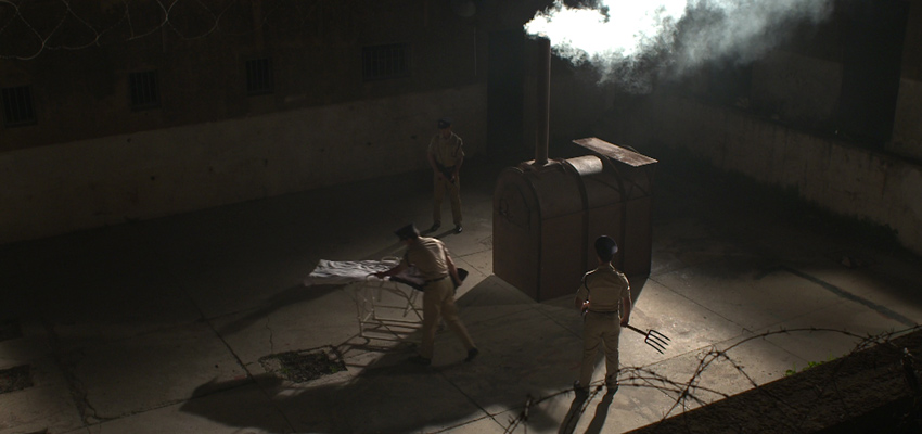 Vor 50 Jahren begann am 11. April 1961 der Eichmann-Prozess in Jerusalem. Ein israelisches Gericht verurteilte ihn zum Tode wegen Verbrechen gegen die Menschheit und Kriegsverbrechen. Eichmann wurde am 31. Mai 1962 hingerichtet. In der Nacht nach der Exekution eine Gruppe von Polizeioffizieren mit einem Schiff außerhalb der Küste des Hafens von Jaffa. Ihre Aufgabe war es, Eichmanns Asche in den internationalen Gewässern des Mittelmeers zu verstreuen. Das Drehbuch basiert auf einem Interview, das Regisseur Dani Gal mit dem Shoah-Überlebenden Michael Goldmann führte. Goldmann war einer der Polizisten an Bord des Schiffes. Regisseur Dani Gal, der 1975 in Jerusalem geboren wurde, lebt in Berlin. Nacht und Nebel/Night and Fog wurde unter anderem bei der Biennale 2011 in Venedig und bei der Istanbul Biennale 2011 präsentiert.