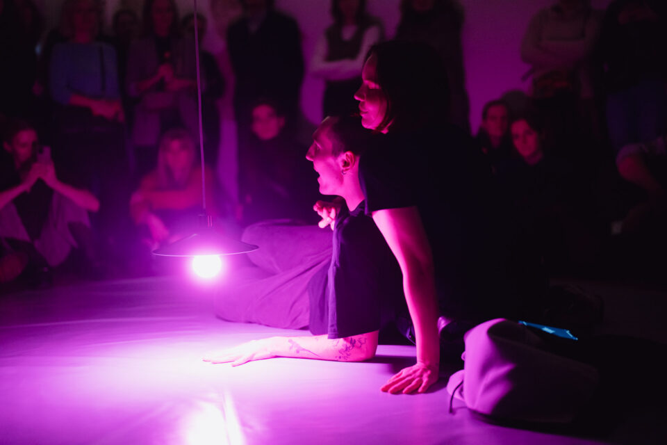 Performance by Julius Pristauz and Cæcilie Heldt Rønnow in the context of the exhibition Unfreezing the Scene. Kunsthalle Wien Prize 2022.