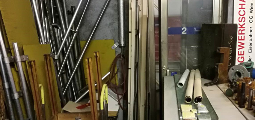 While searching for leftover material, the artist became aware of a unique collection located in the basement of a school in the 10th district of Vienna. For years, educator Karin Schmidt gathered elements of the Südbahnhof architecture and equipment. The collection consists of a wide range from tiles, doors, and clocks over signposts up to tableware from the station bistro. Together with Andreas Fogarasi, Karin Schmidt will lead through this outstanding archive thereby reclaiming the visual presence of the Südbahnhof into the present day.