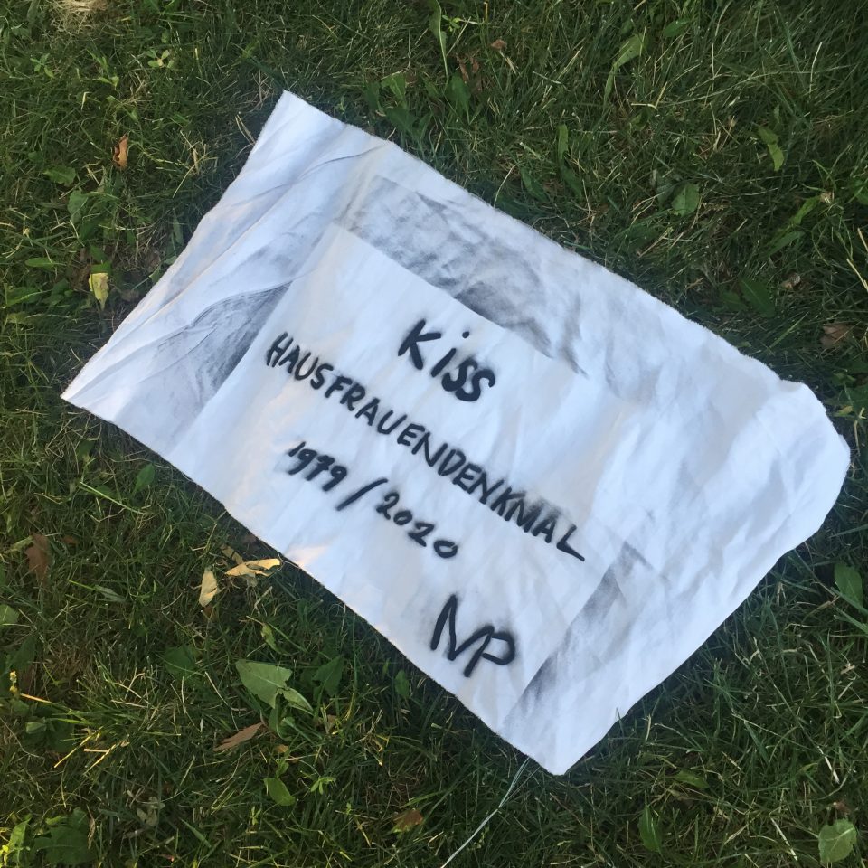The Hausfrauendenkmal is a sculpture made of patched up linen and tablecloths. Inspired by the material that artist Margot Pilz used for her work, we will try out different textile printing techniques on t-shirts and dishtowels.