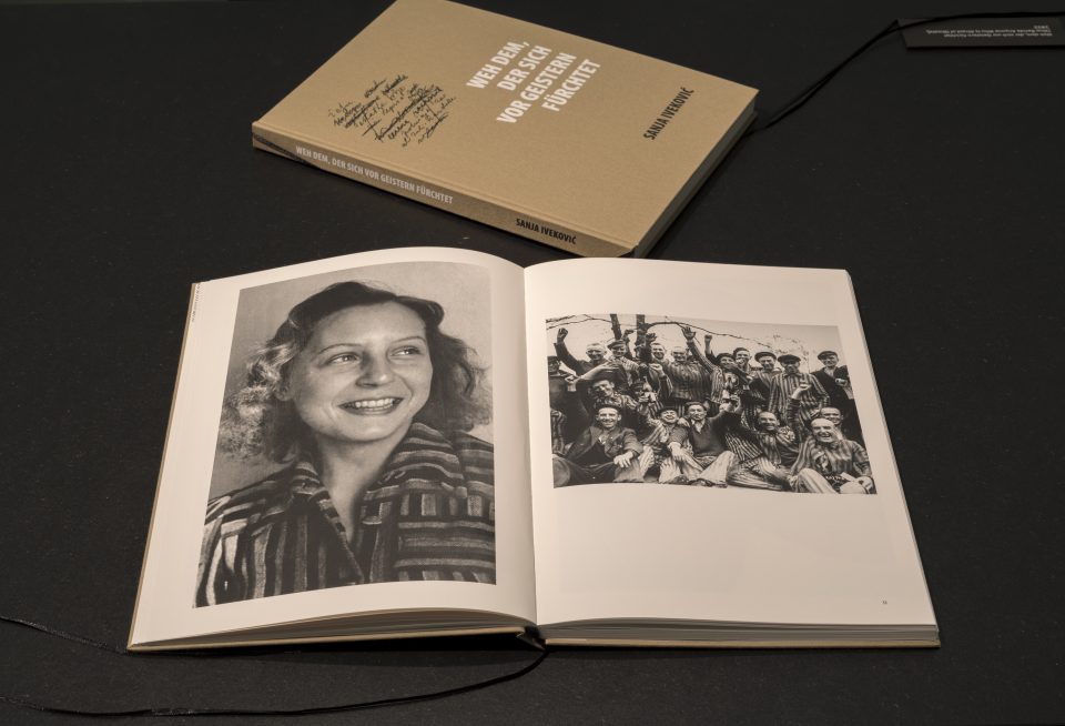 The artist‘s book Weh dem, der sich vor Geistern fürchtet [Woe Betide Anyone Who is Afraid of Ghosts] consists of around 50 poems written by Nera Šafarić-Iveković, mother of Sanja Iveković, as well as excerpts from her diary, facsimiles of letters she sent and received during her incarceration in Auschwitz, and numerous photographs from Sanja Iveković’s personal archive. Šafarić-Iveković was arrested as a member of the Communist resistance during the Second World War and deported to the Auschwitz concentration camp.