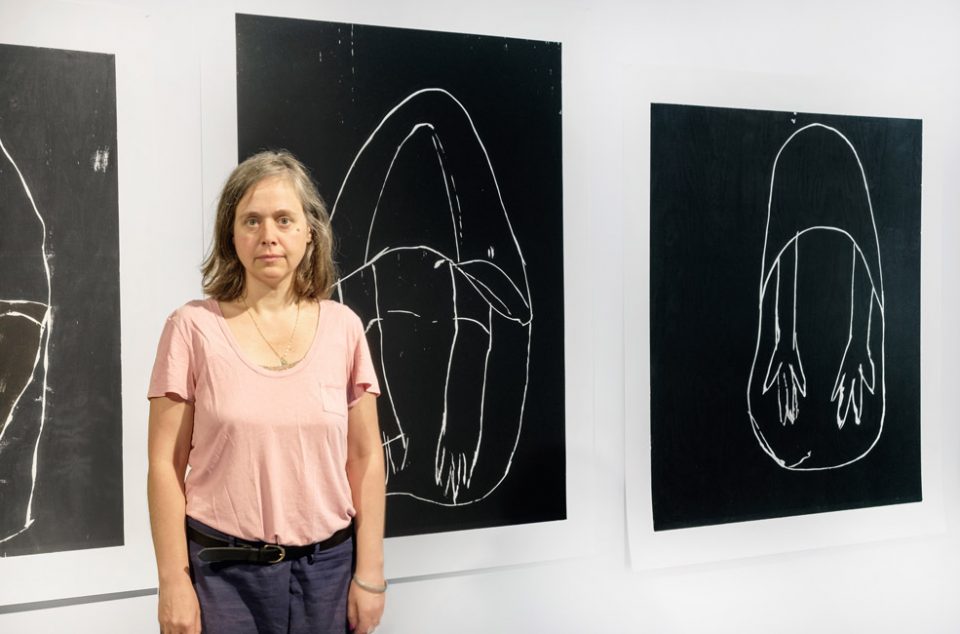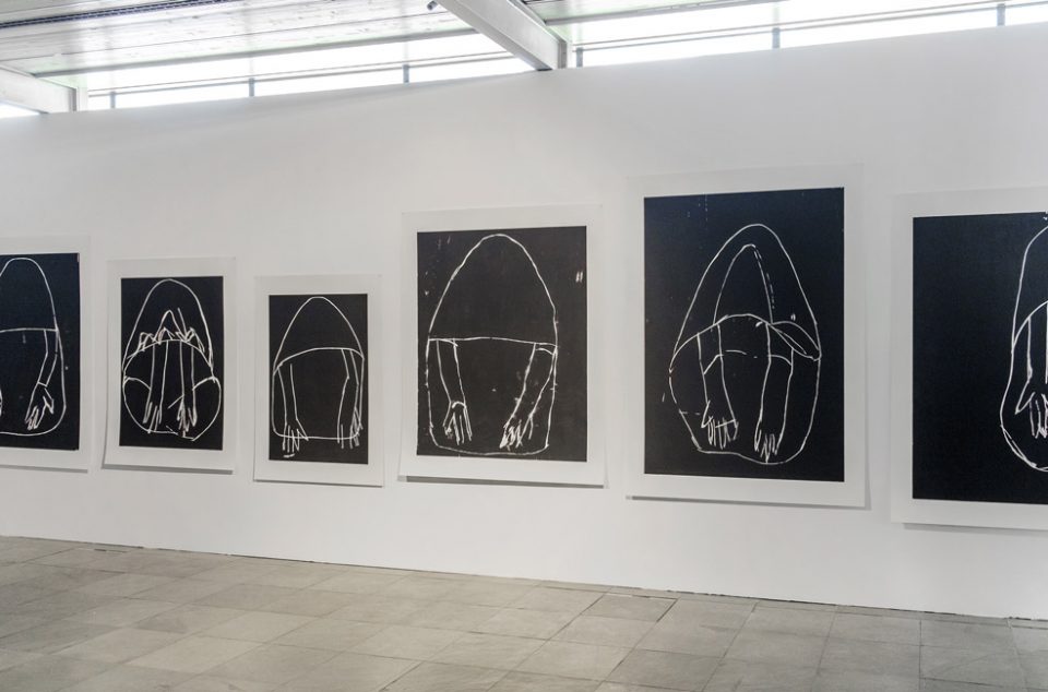 The gestures and attitudes conveyed by body language is one of her main interests, which, translated into visual signs, are readable over time and remain comprehensible, such as gestures of bending, veiling or stretching hands. For example, Büttner reduces the figure of Ernst Barlach’s sculpture Verhüllte Bettlerin into the old-fashioned artistic medium of a woodcut. Despite these steps of abstraction and historical distance, the content remains clear.