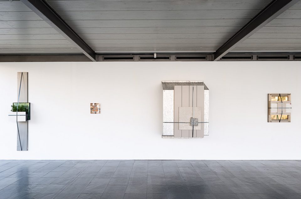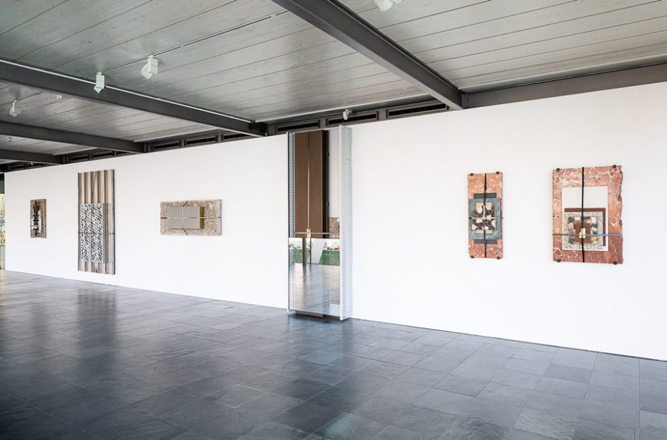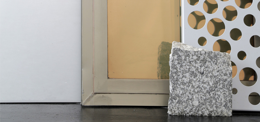 Processes of urban transformation and their manifestations in surfaces are also at the heart of Nine Buildings, Stripped. Kunsthalle Wien Karlsplatz—itself a scene of architectonic transformation: Until early 2001, the site was occupied by a distinctive yellow container-like block, Kunsthalle Wien’s temporary first home—showcases newly produced sculptures for an exemplary study of the dynamics that characterize the transition of urban landscapes. Unassuming at first glance, Fogarasi’s presentation consists of wall-mounted and freestanding “material packages”: composed of original fragments of buildings that no longer exist and samples or parts of the visible exterior of the structures that replaced them (façade cladding, floor tiles, window and door elements, etc.), they offer radically abstract portraits, reduced to materiality, colours, and tactile qualities, of specific urban situations across time. Between image and sculpture, surface and depth, document and construct, they embody example cases of how we build and rebuild at given moments: material freeze-frames that capture the complexity of the city’s genesis in vivid tableaus.