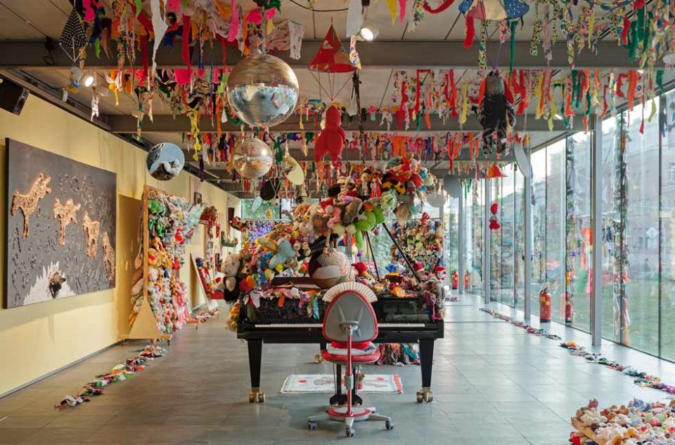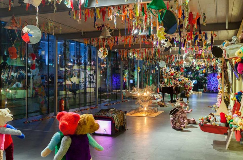 GesammttkkunnsttMeshuggahhLaandtttt is co-commissioned by Kunsthalle Wien and Witte de With Center for Contemporary Art where the adapted exhibition is on display January 29 – May 1, 2016.