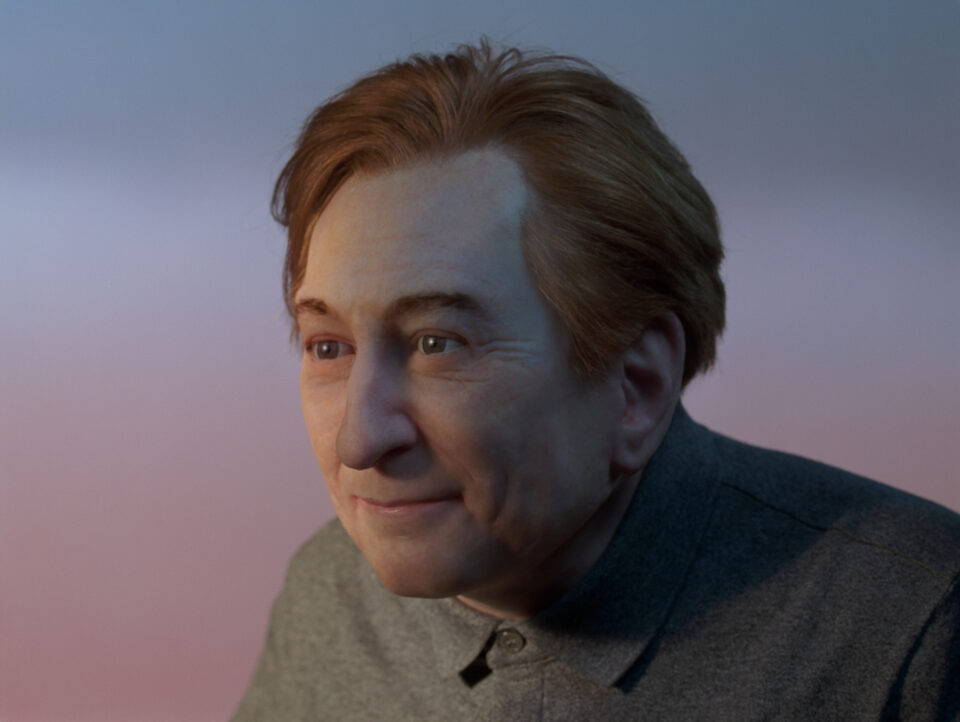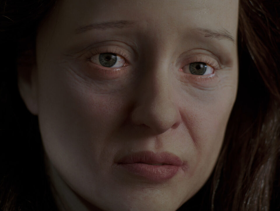 La Gola (2024) is structured by a series of letters between two correspondents, Gianni and Rossana. Over the course of eight letters, Gianni describes the successive courses of an exquisite banquet, while Rossana gives an account of the progressive decline of her mother’s health. The two characters are played by hyperrealistic mannequins, that appear motionless with their eyes modelled and animated in CGI. Their voices are accompanied by an original score composed by Federico Chiari. The music was performed on a Pietro Corna organ and recorded at the Cattedrale di Sant’Alessandro Martire in Bergamo. Drawing upon themes familiar from art history, Marcon playfully combines graphic accounts of cuisine and disease against an elaborate and energetic score, using language, voices and music to create dramatic tension. Produced in partnership with Centre d’Art Contemporain Genève and Kunstverein in Hamburg, its presentation is Marcon’s first solo exhibition in Austria.