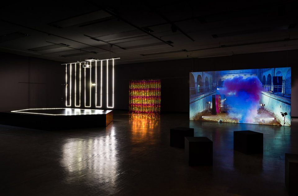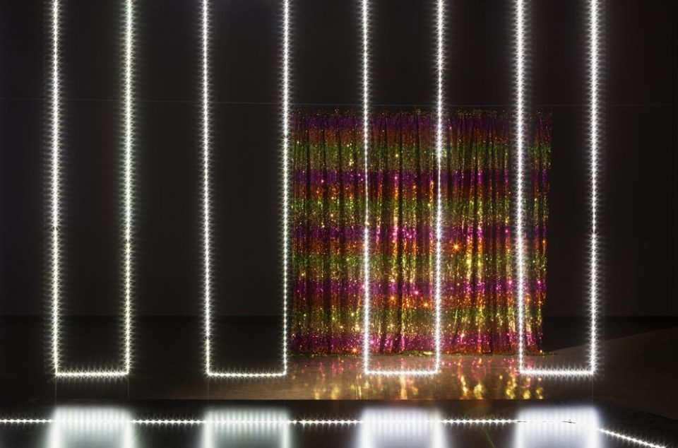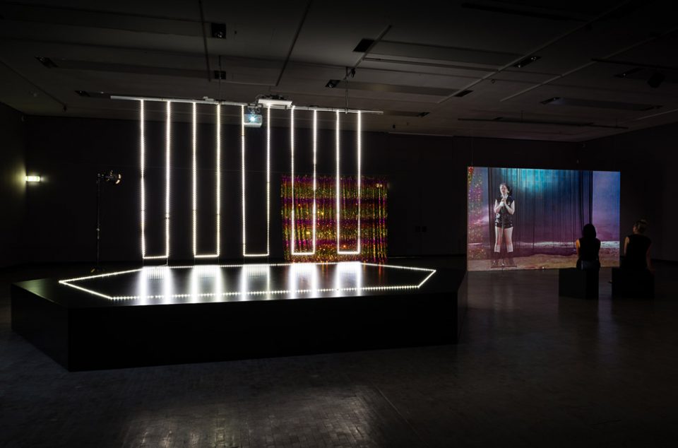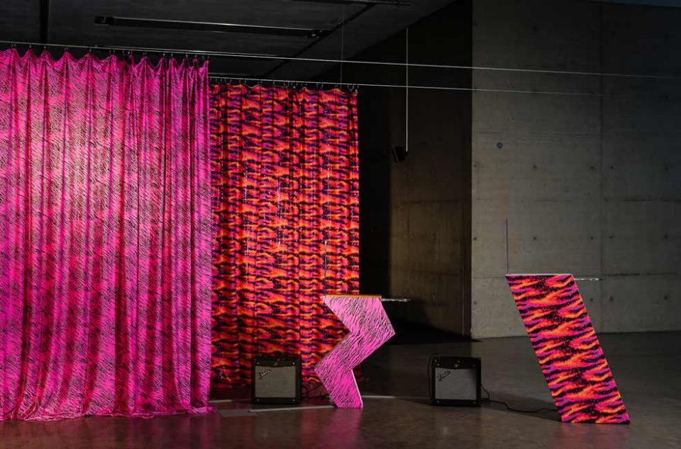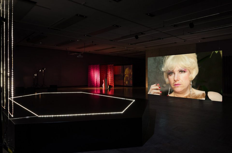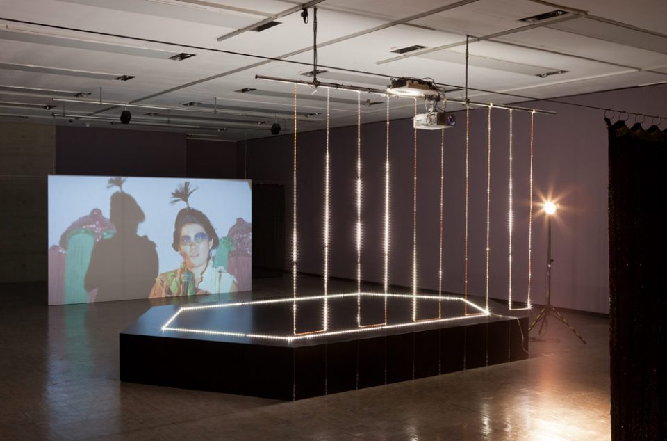 Pauline Boudry and Renate Lorenz present three video-based works and a series of new sculptures, which make up an atmospheric time-reflective installation as part of Future Light, the visual arts part of the VIENNA BIENNALE 2015. The videos are highly staged scenarios where the past is recreated for a future use and new desires take shape. Amidst glitter, curtains, camouflage patterns, impressive wigs and a certain amount of musical interaction, a form of playful opacity makes itself felt among characters who are deliberately difficult to categorize.