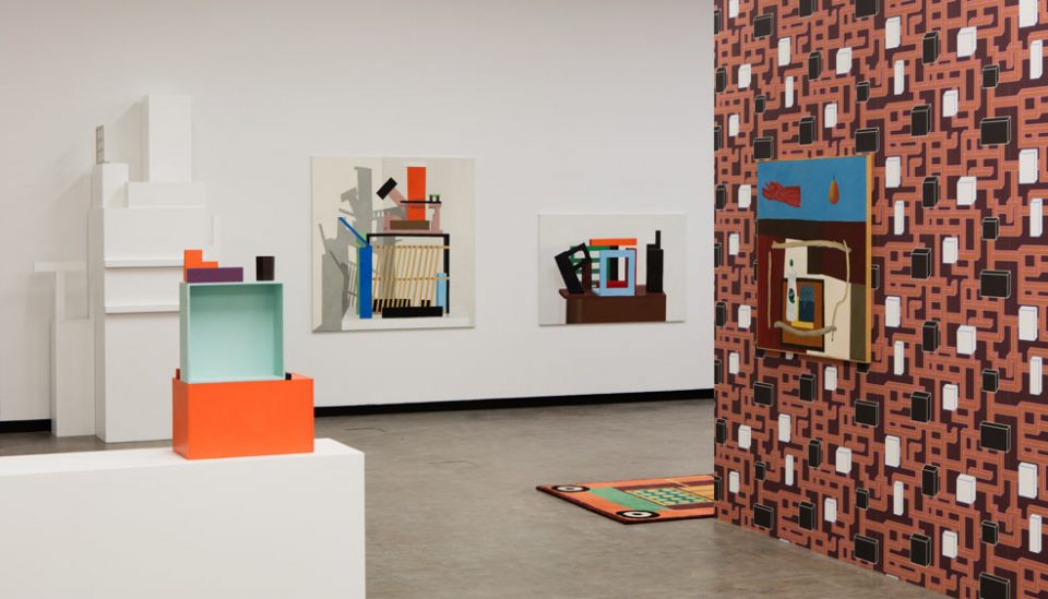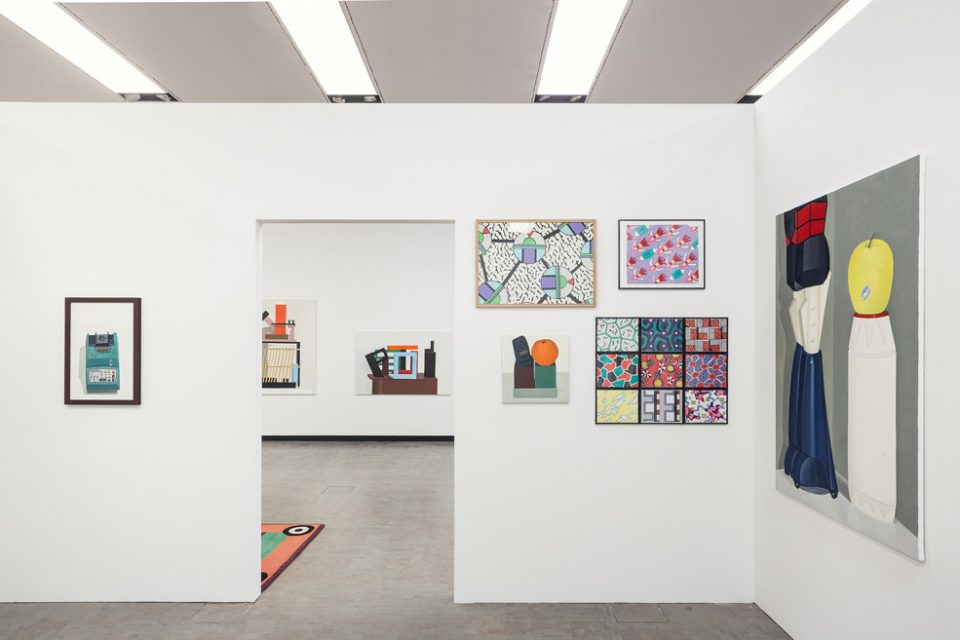 Self-taught artist and designer Nathalie Du Pasquier was born in Bordeaux, France, in 1957. She lives in Milan. Between 1975 and 1977, she traveled extensively—in particular in Africa—and her experiences during that time informed her later work. Between 1981 and 1986, Du Pasquier worked as a designer. She was a founding member of Memphis, the influential post-modernist design and architecture collective created under the leadership of Ettore Sottsass. During this period she designed vibrant and graphic surface patterns for numerous textiles, carpets, and plastic laminates, as well as objects and furniture. Her design was influenced by the African textile patterns as well as Wiener Werkstätte, Arts and Crafts, and William Morris. Since 1987, Du Pasquier has dedicated herself to painting, though she occasionally still does design work. Most of her paintings are still lifes however the recent works don’t depict a group of things but instead portray a relationship between forms. In general her work is concerned with arrangements circulating between existing things, paintings and three-dimensional objects. In this sense it does not have to do with decorating objects. In recent years younger generations have shown a lot of interest in her work thanks to the internet.
