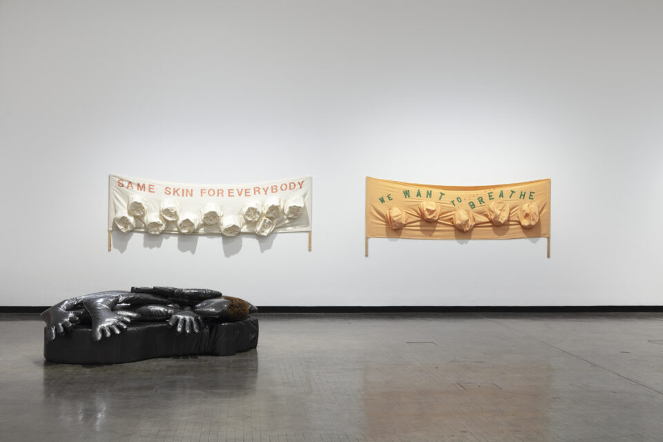 The exhibition includes a series of Pénétrables sculptures. These textile sculptures were originally intended as participatory works with apertures that people could insert limbs or heads into, occasionally with several performers creating a single organism. Also presented is a reconstruction of a large-scale installation, entitled Chambre en Fourrure, or Fur Room, originally made in 1969. The approximately 3m × 5m × 4m structure combined purple faux fur, zippers and a metal armature to create a freestanding room which could be entered, inviting the audience to become performers.