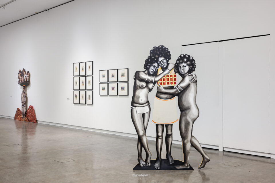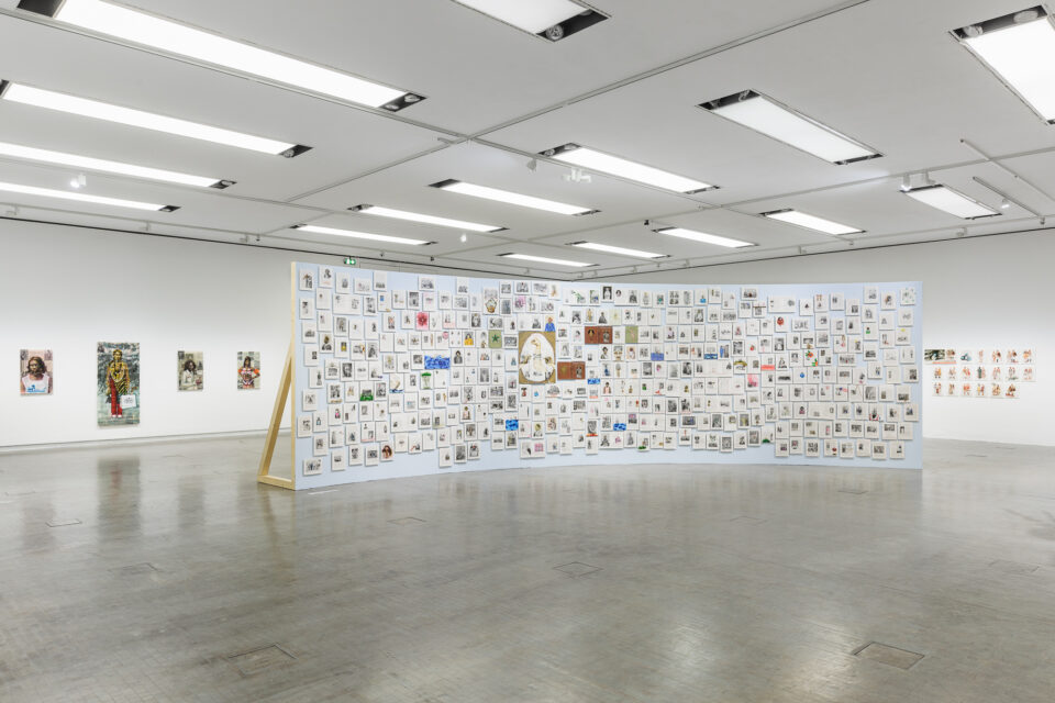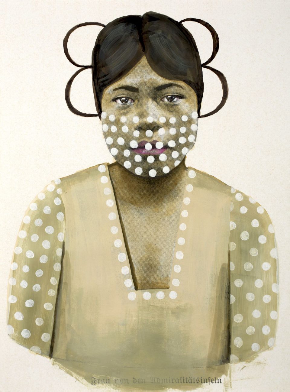Kahlon radically alters the colonial images so that her subjects, made into curios by the books’ photographers and authors, reassert their individuality and dignity. Painting is central to this process and, in opposition to the history of Western painting, she sees it, in her own words, as “a form of care work—done in the service and from a sense of responsibility and care toward others.” Her practice aims at complicating and resisting the ways in which painting is often reduced to a luxury good. Instead, she opens a space of potentiality and offers a form of radical care for the protagonists of her works. Drawing and painting become sites of political and aesthetic resistance, and the violence inherent in colonial and ethnographic images is confronted with beauty, humor, sensuality, and seduction.