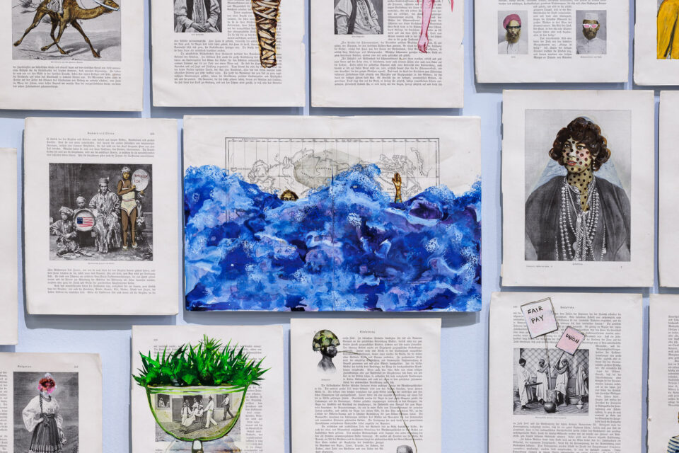 There is a story within each of her works—whether from a book, a series of documents, or archival research. The books that Kahlon uses are not beloved, nor does she feel attached to the documents used—on the contrary, the books are often from the heyday of colonialism full of patronizing clichés, using the dubious scientific methods of nineteenth-century anthropology and ethnology to create an image of inferiority and otherness, justifying colonial and imperialistic expansion.