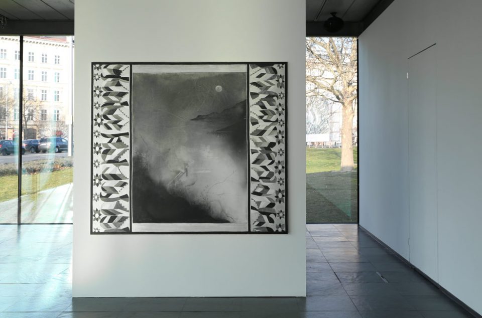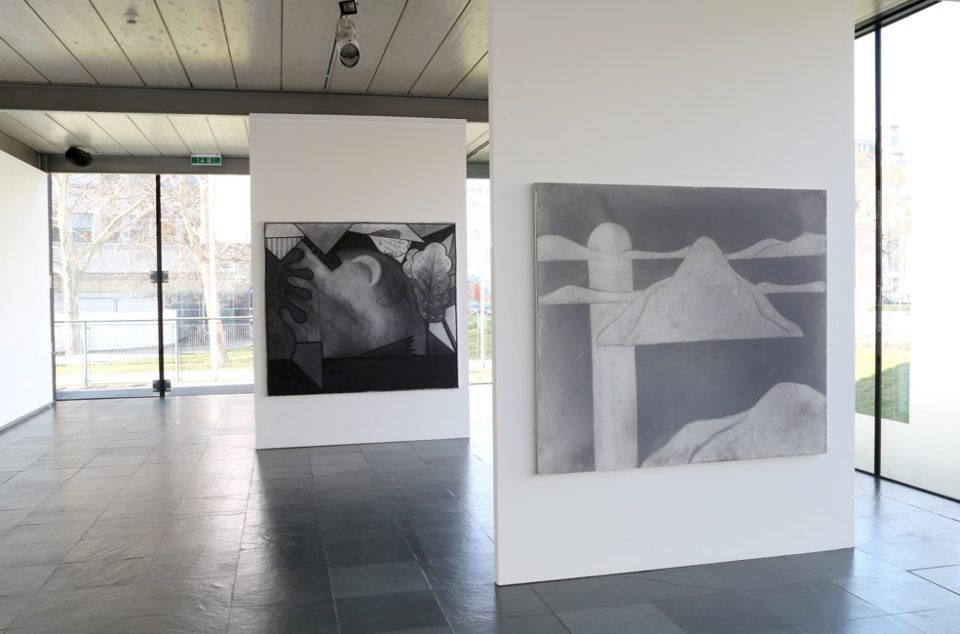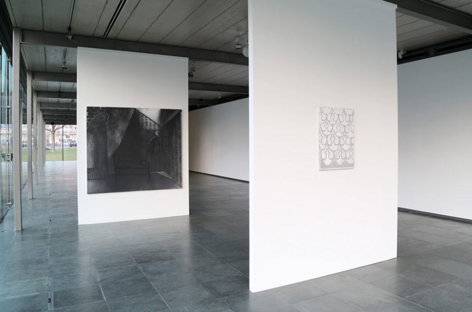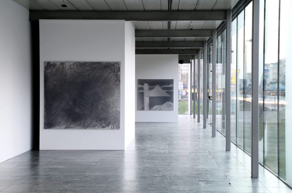 Taking the poem by the American poet Elizabeth Bishop as its starting point, the exhibition Silke Otto-Knapp / Carl Fredrik Hill. Questions of Travel (Wien) brings together works by two artists who, each within their own genre, intensively examine the depiction of landscapes and the interweaving of body and space. The artist Silke Otto-Knapp draws on the codes of the stage-like quality of the glass exhibition space. Together, the artist’s works and the urban outdoor space create a frame of reference that quotes and reflects the iconographic architecture of the site in a multi-levelled manner. In this sense Otto-Knapp’s almost monochrome landscape images, reminiscent of stage scenery, are concentrated zones of both nature and culture in which gardens expand to fill the picture and clusters of buildings form atmospheric scenes.