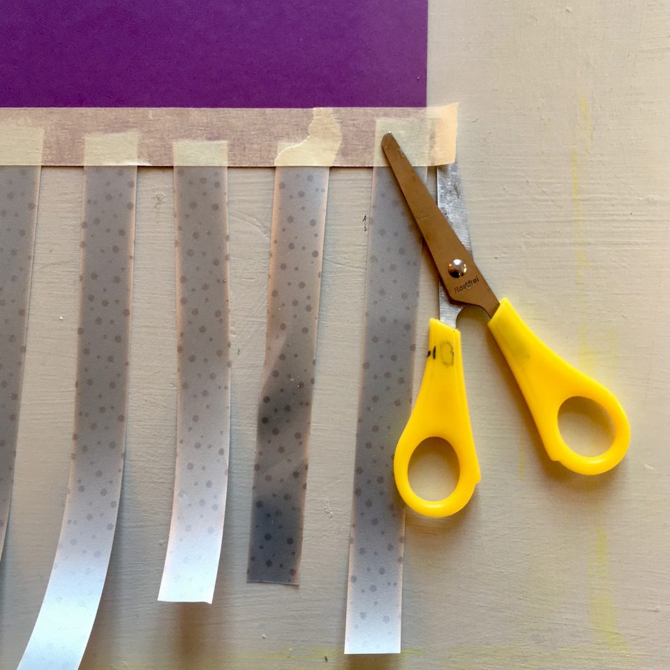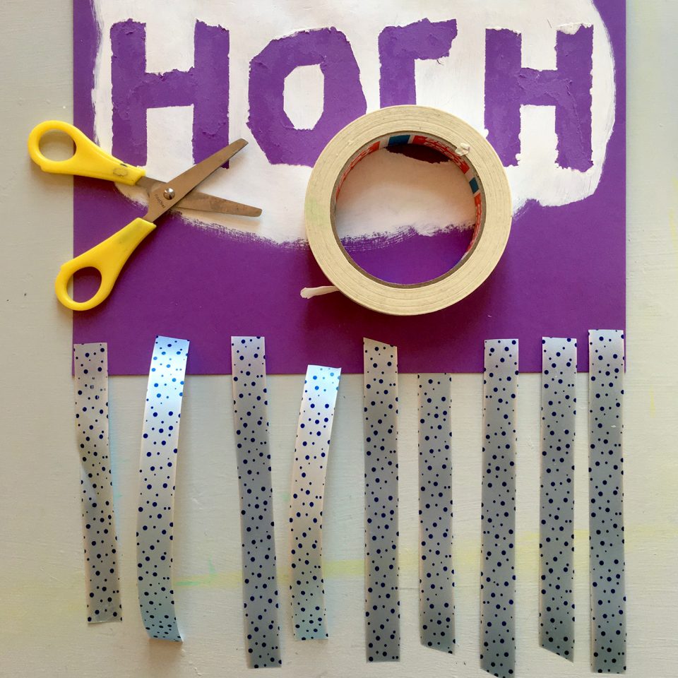 • Rip or use your scissors to cut off short strips of masking tape and form letters by sticking them onto your poster.