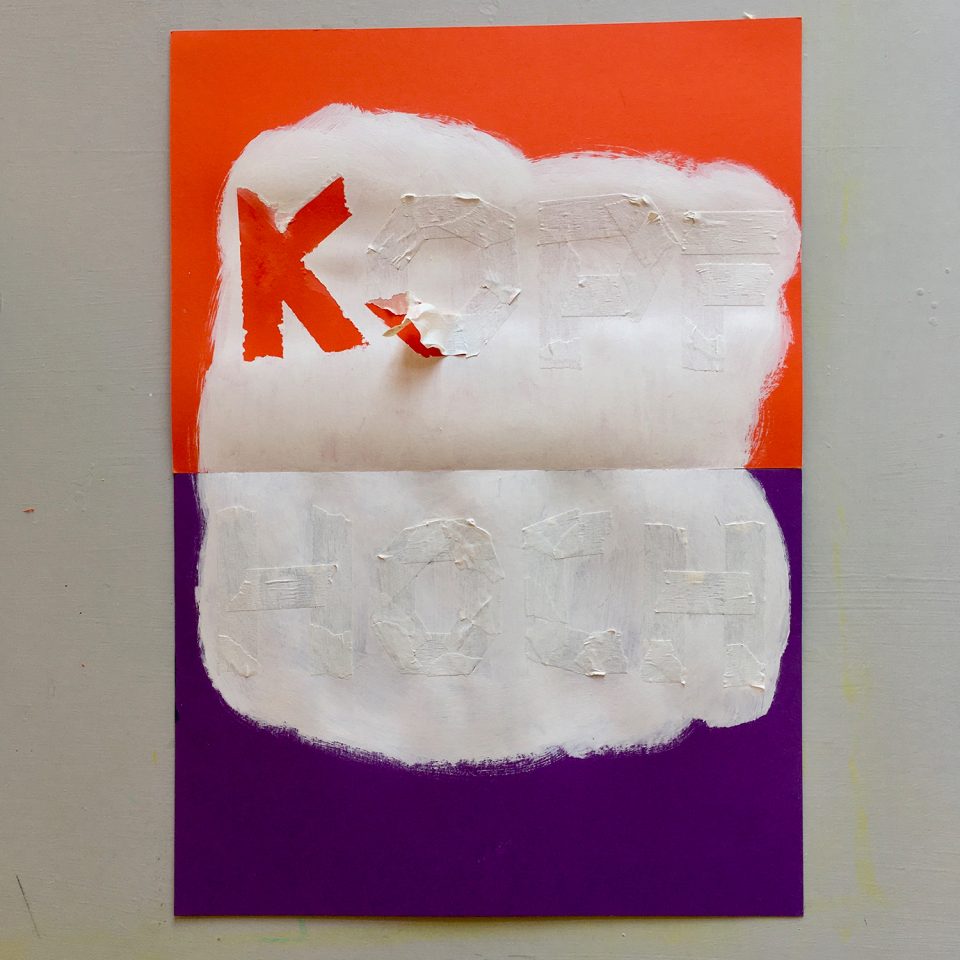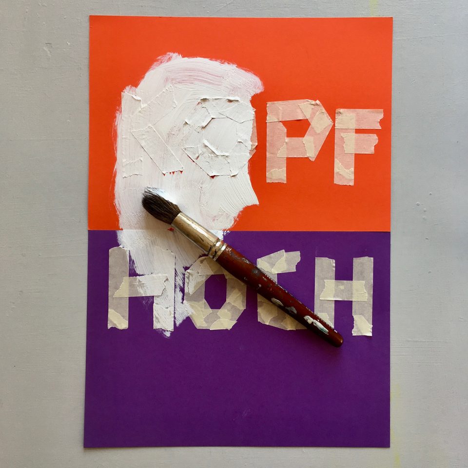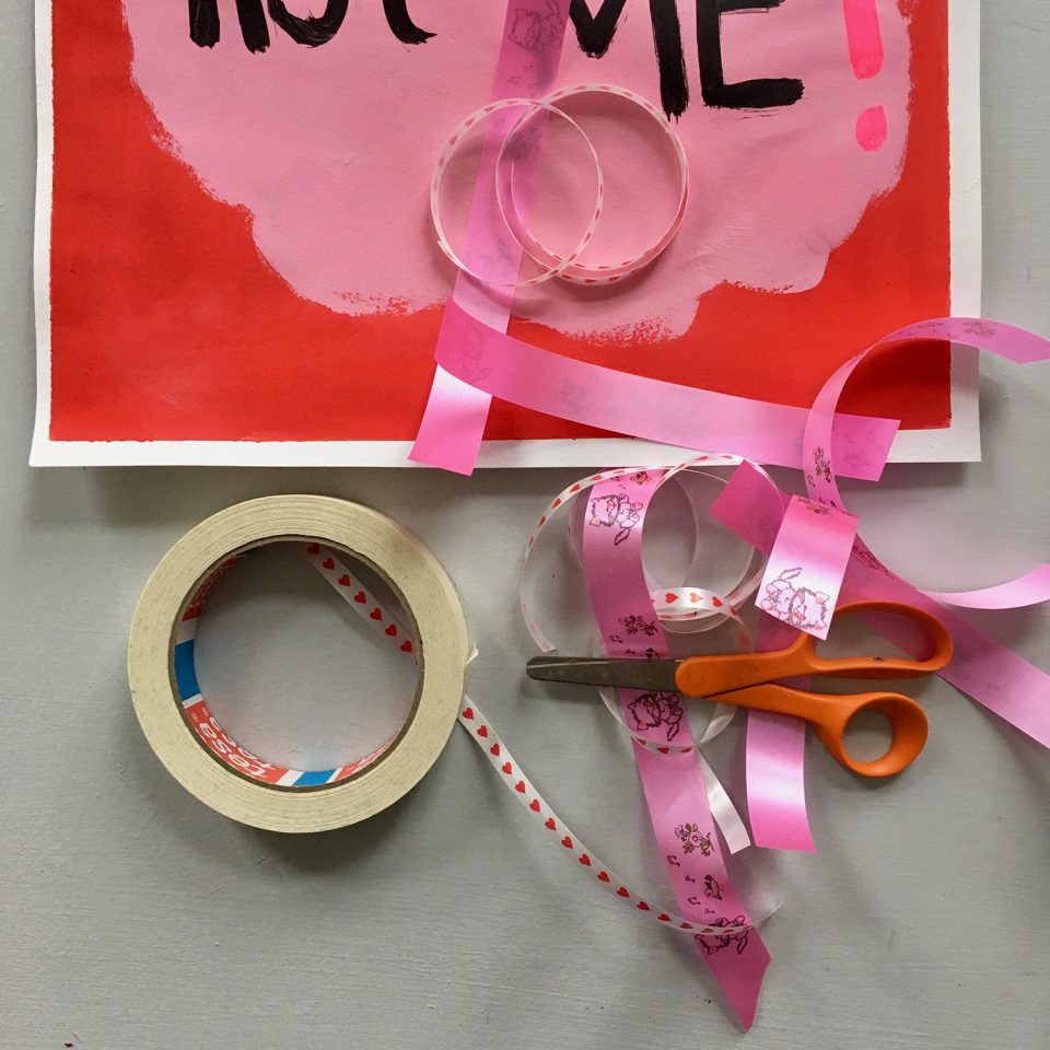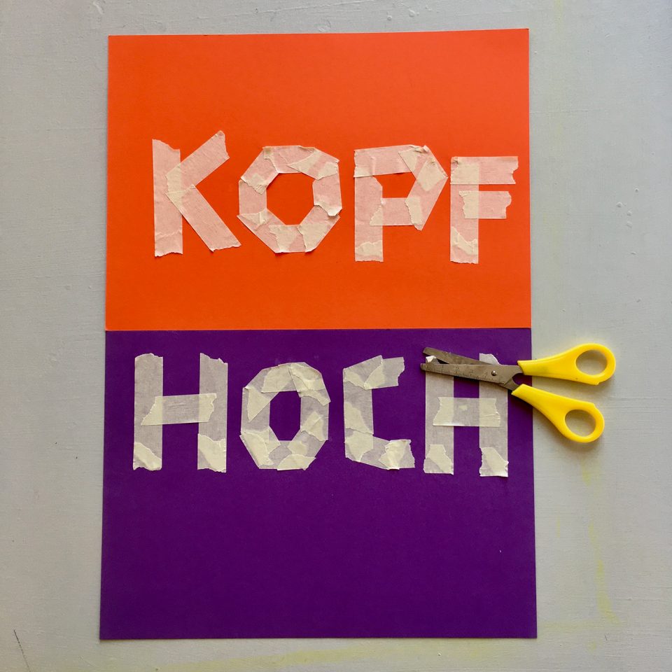 • When the paint is dry, carefully remove the tape from the poster. (If you tear a bit too much away from your letter or when the paint ran under the tape, you can easily fix it up with a thin brush afterwards.)