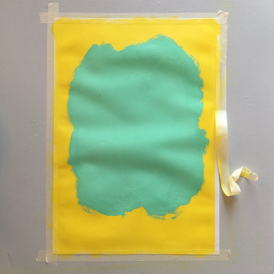• Now take a second color and paint a big spot on the poster, which will become your speech bubble.