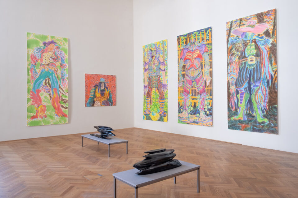 Marc Truckenbrodt’s graphic art typically engages with his immediate surroundings; his observations and reflections often inspire narratives and comic strips without words that blend a compelling light touch with profound insights. For Behauptung [Assertion], his thesis project, which Truckenbrodt executed in colored ink on paper, he chose to grapple with the subject of power, including its contradictions, necessities, and dangers, and selected a comparatively large format: the beholders encounter five larger-than-life figures whose stature and demeanor at first blush suggest superheroes – closer inspection, however, reveals details through which the artist has endowed his characters with a productive ambivalence.