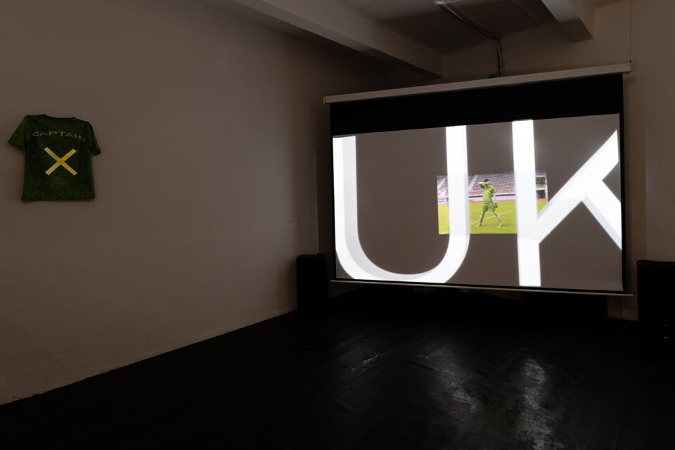 Final credits to conclude her years at the university: Luisa Berghammer’s video installation *captain screeching* reflects on collective processes and the individual’s position within them. A soccer film that does not exist, the character of a goalkeeper or team captain who is actually more than one person: the installation shrewdly intertwines questions of authorship with an opening toward an expanded conception of scenery inspired in part by Berghammer’s double degree in stage design as well as sculpture and space and the resulting dynamic tensions and contrasts.