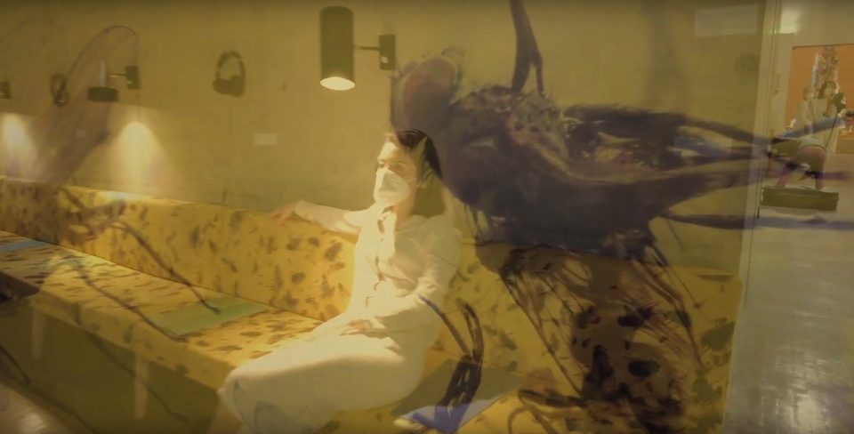 On the basis of their lectures in the exhibition Ines Doujak. Geistervölker students from the Master of Arts Education program at the Music and Arts University of the City of Vienna embarked on an associative journey of thoughts through the exhibition. The resulting video clip is an audiovisual collage of musical and performative interventions that arose from the engagement with Ines Doujak‘s artistic works.